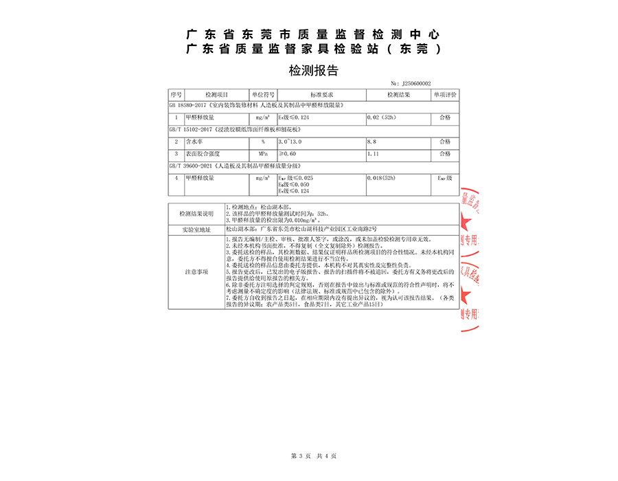 浸渍胶膜纸饰面刨花板检测报告