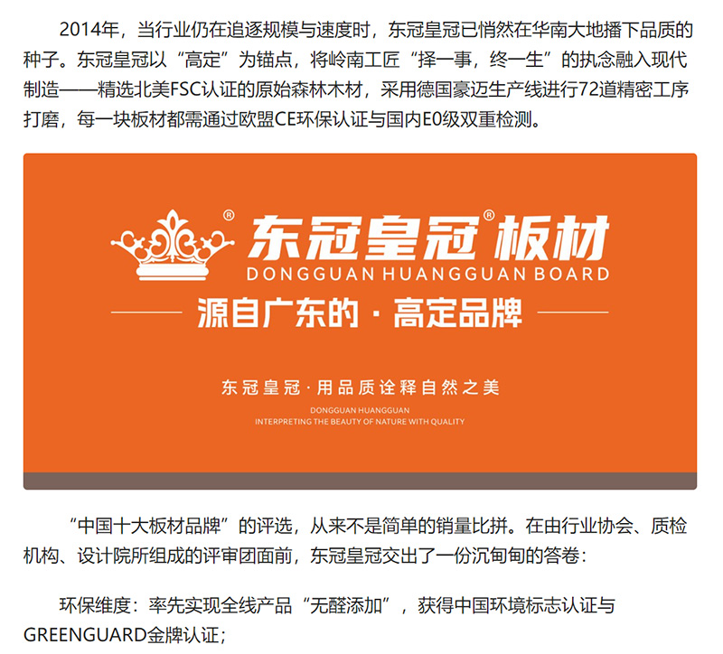 东冠皇冠板材:以匠心雕琢,定义高端定制家居新标准